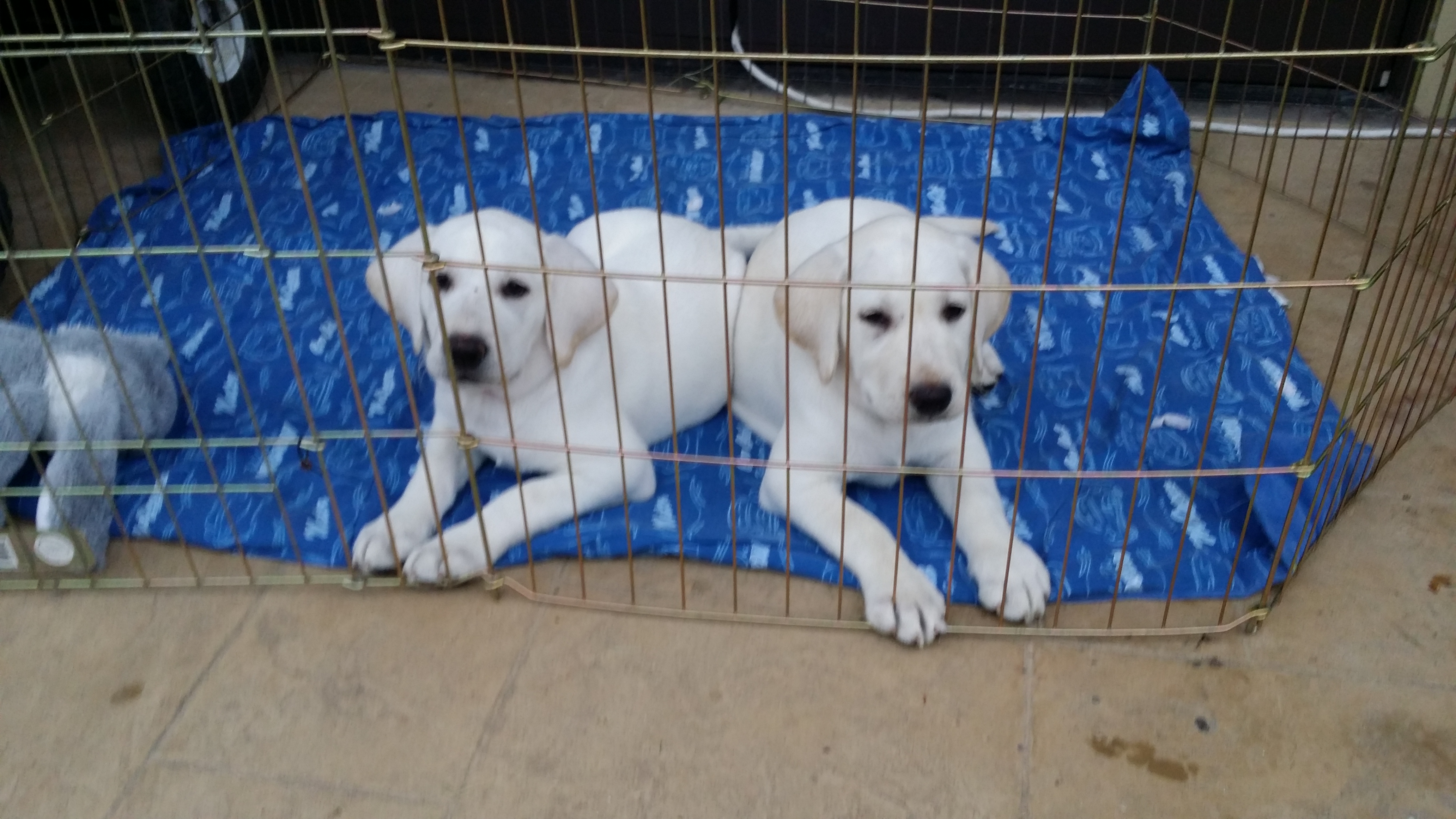 My White Labs has been quit a hit this year for local charities. After only 2 fundraisers the total raised has reached $17,500.00 These 2 female puppies went with me to the last charity to show what my dogs look like. They are Bailey’s Cotton Candy on the left & Bailey’s Ellie Mae on the right. They are Ivory’s daughters they are not for sale They will be future breeding females in the years to come.
