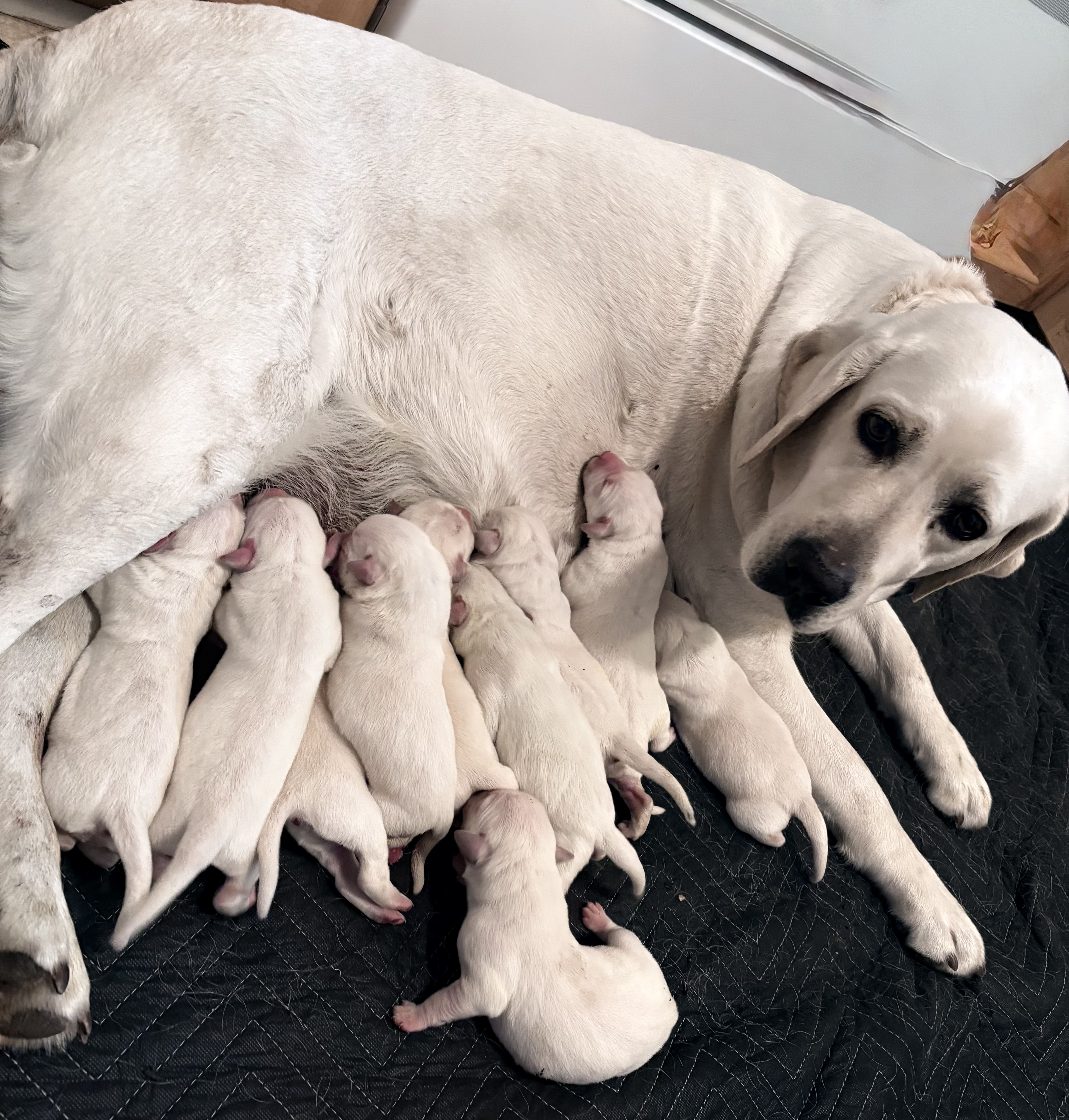 We should have several litters this spring. You can get on the waiting list at anytime to reserve a white lab puppy.