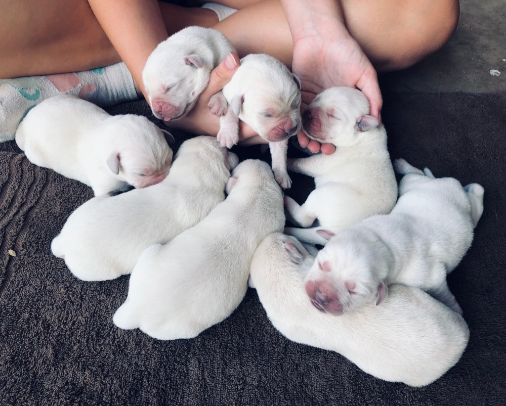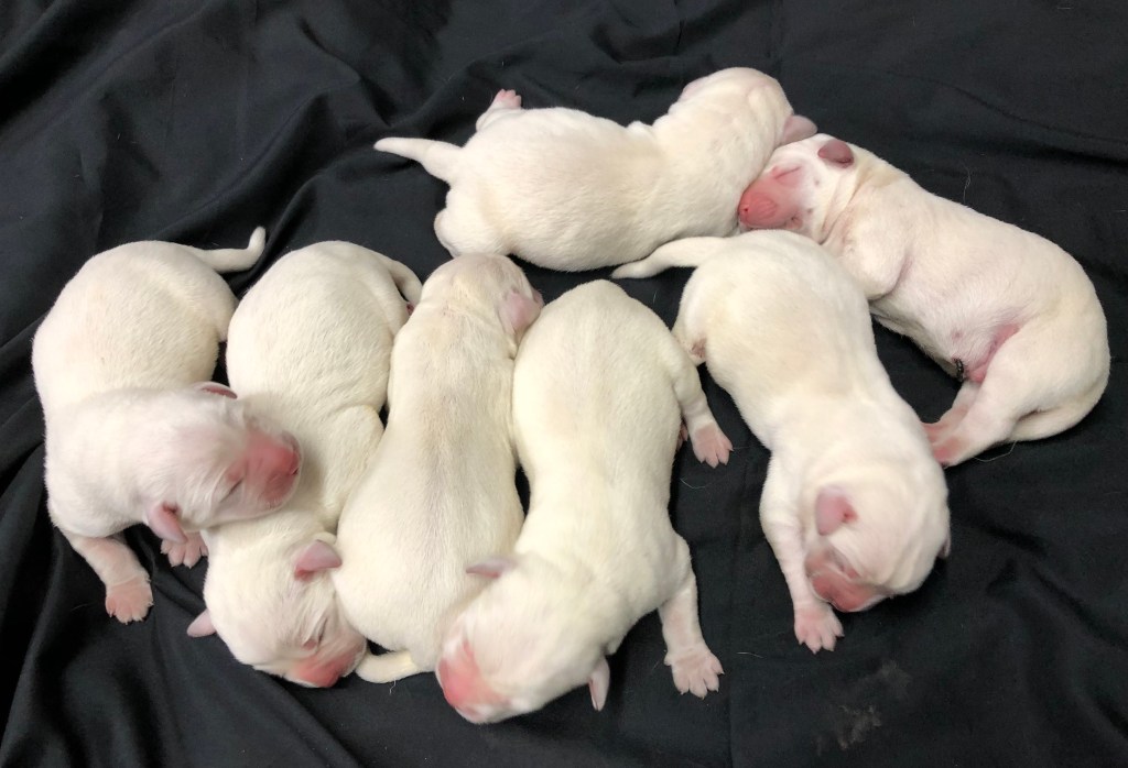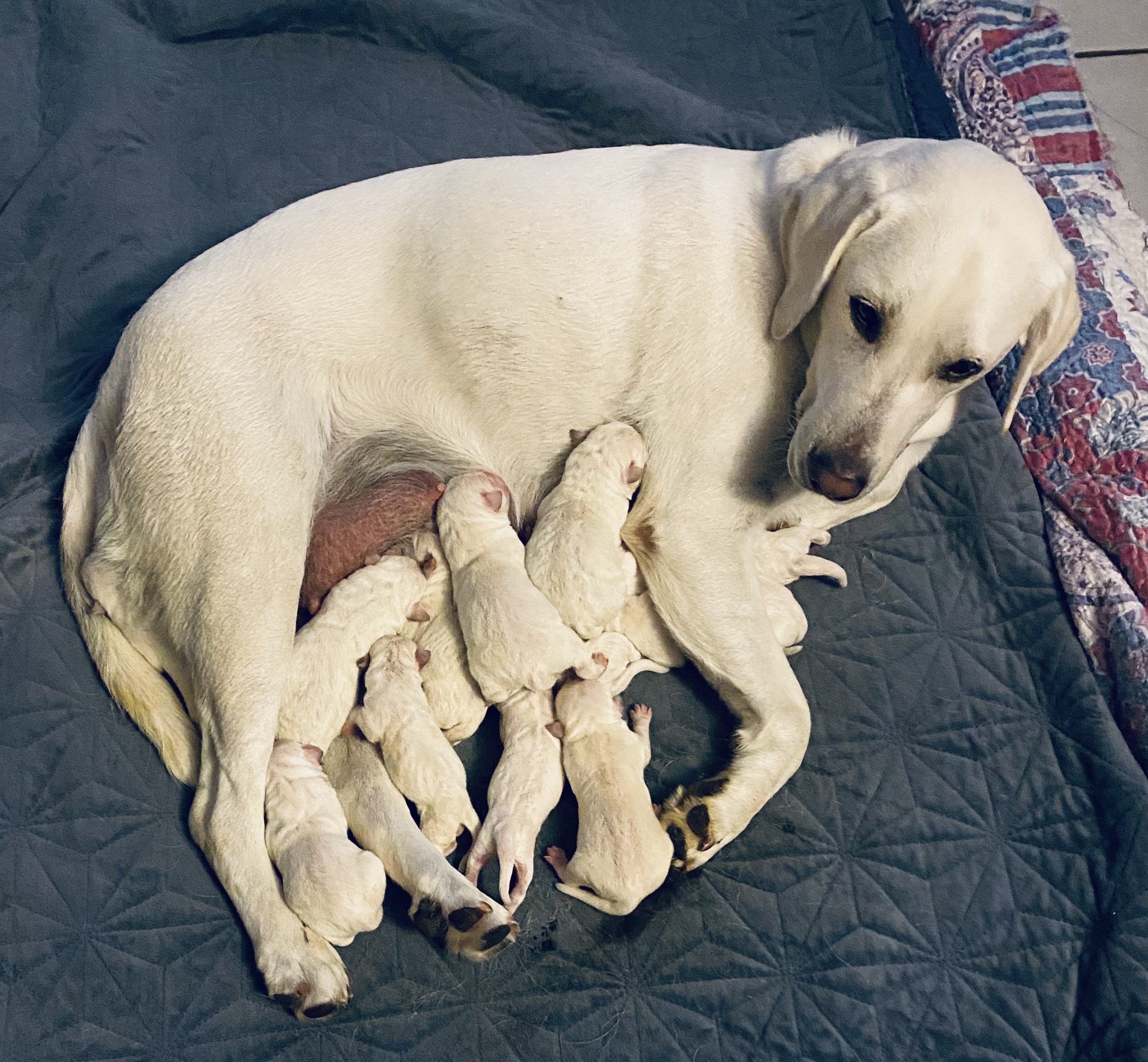 It’s National Dog Day! So it’s a great day to post updates about upcoming litters. Bailey’s Sugar Cookie is due to deliver her first litter in about 10 days. After that Bailey’s Beauty Sissy is due Oct. 9th. There will also be at least two litters that will be ready around Christmas. And if you prefer one in January that may also be a possibility. So now is the time to get on the puppy list of your choice. Don’t wait and miss out on a beautiful white lab, like the sweet boy pictured from our Lisa and Snoop litter last year. We are located near Austin, TX.