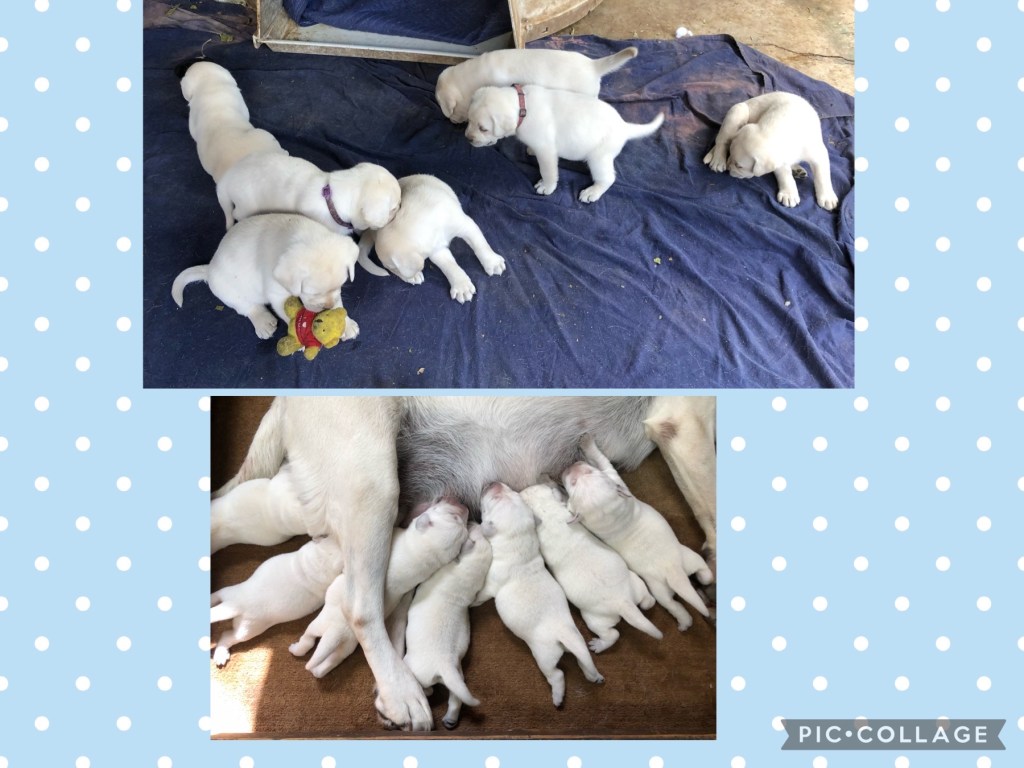 Bottom photo is Sissy & Jaxon’s litter there are only two males still available in that litter. We are on a roll raising these sweet white lab babies. There are still a couple of litters due real soon and even some Christmas puppies in the future plan. 🎄