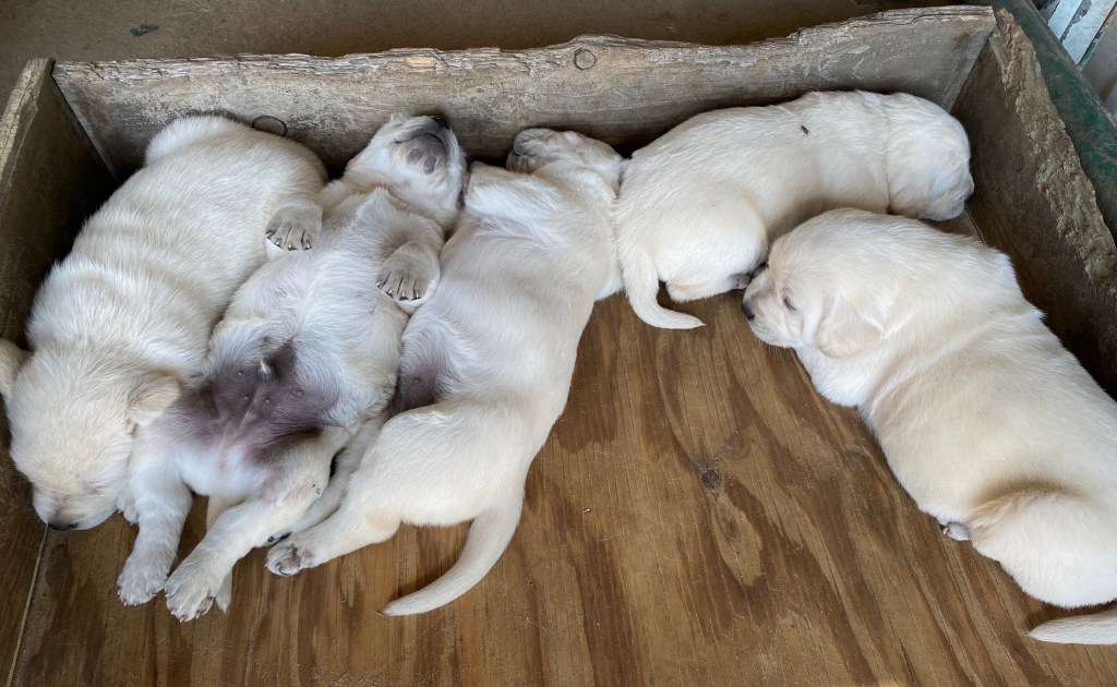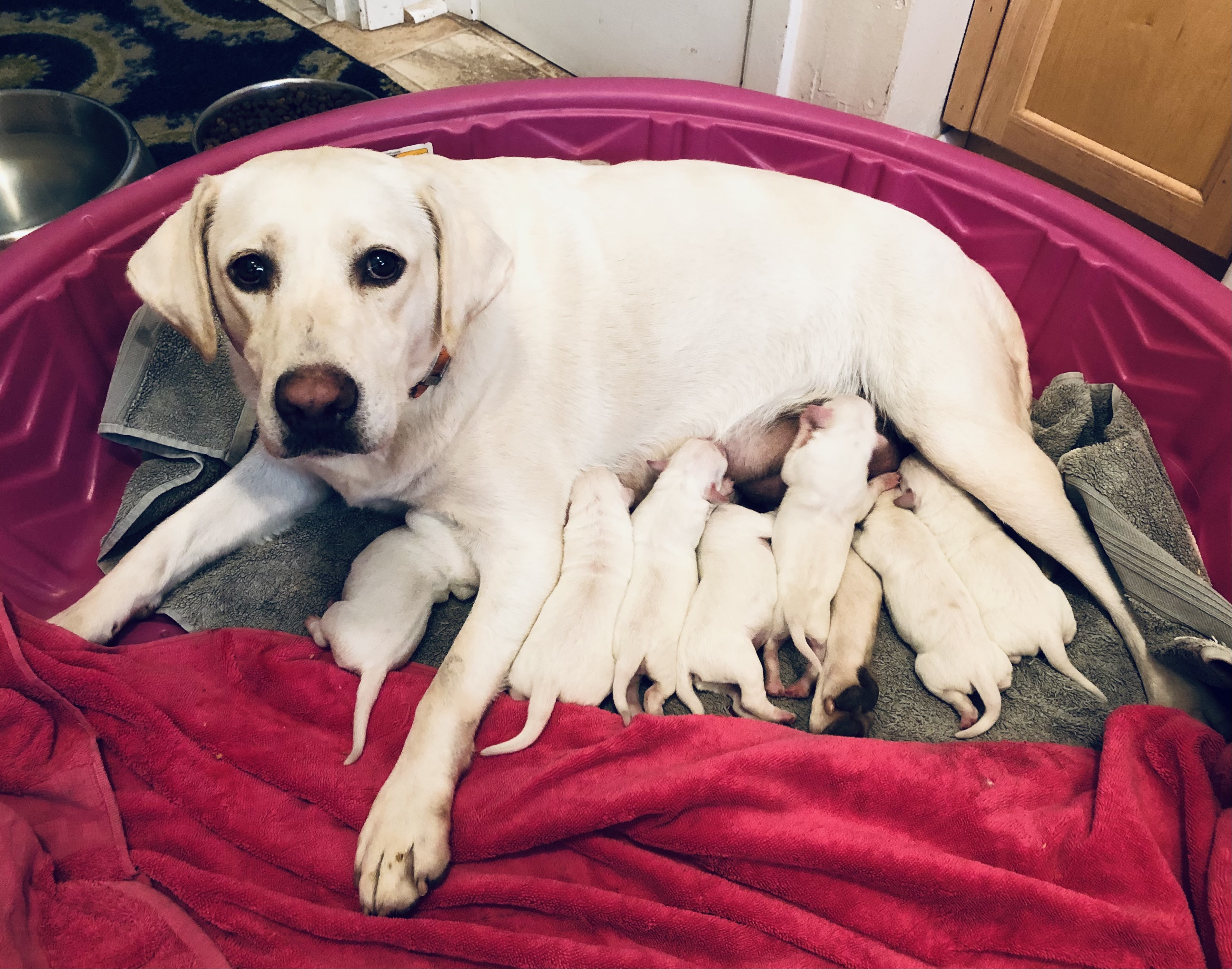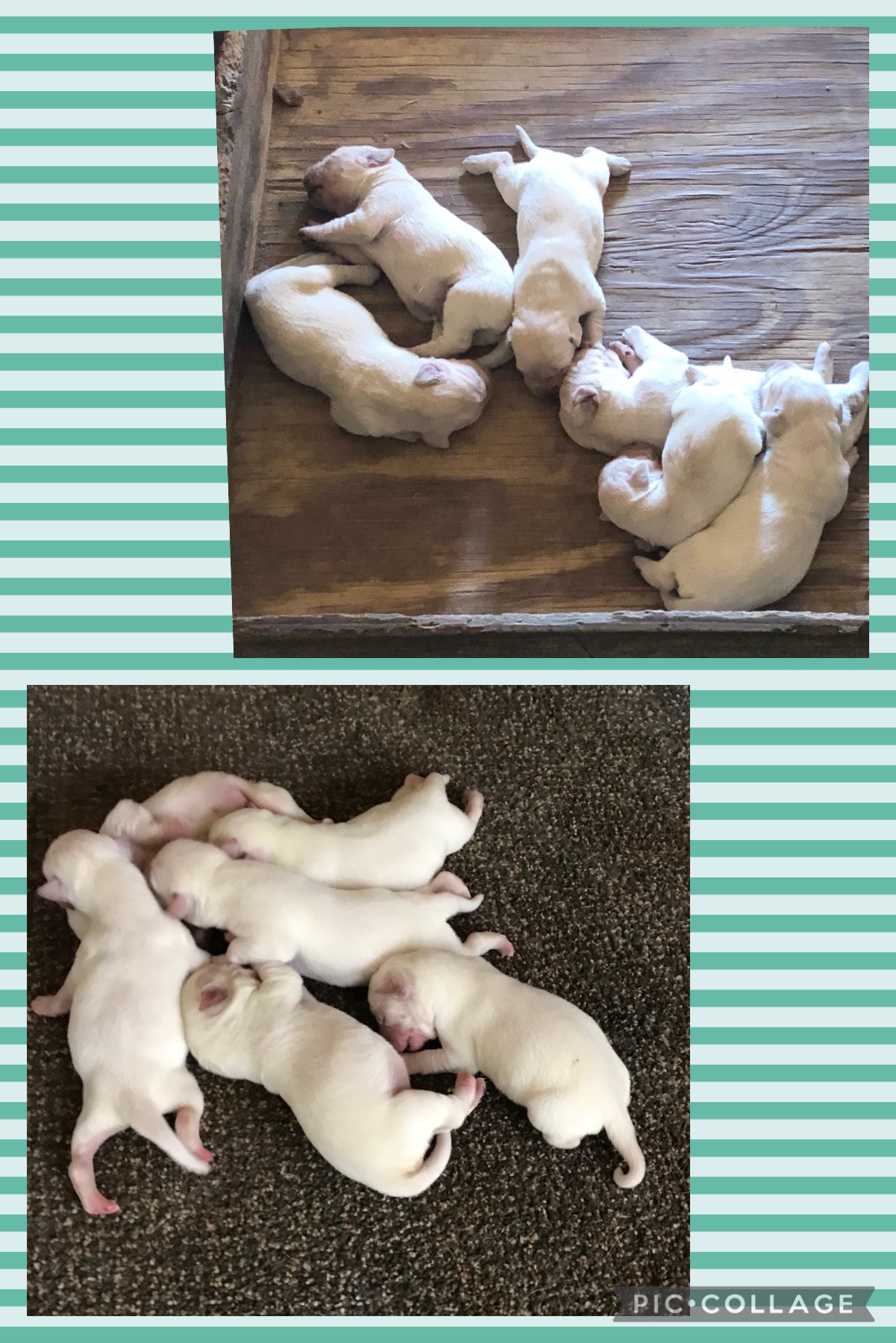 Here are our new litters. Top photo are Juice and Nitro’s puppies born 9-26. There are 2 males and 4 females. Three females are still available in this litter. Bottom photo are Kit and Max’s puppies born 9-27. There are 3 males and 2 females. One male and 2 females are still available. Pick time for both litters is mid November.