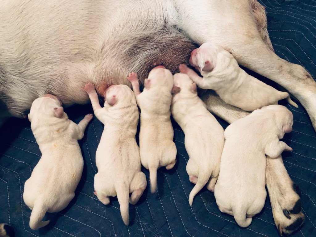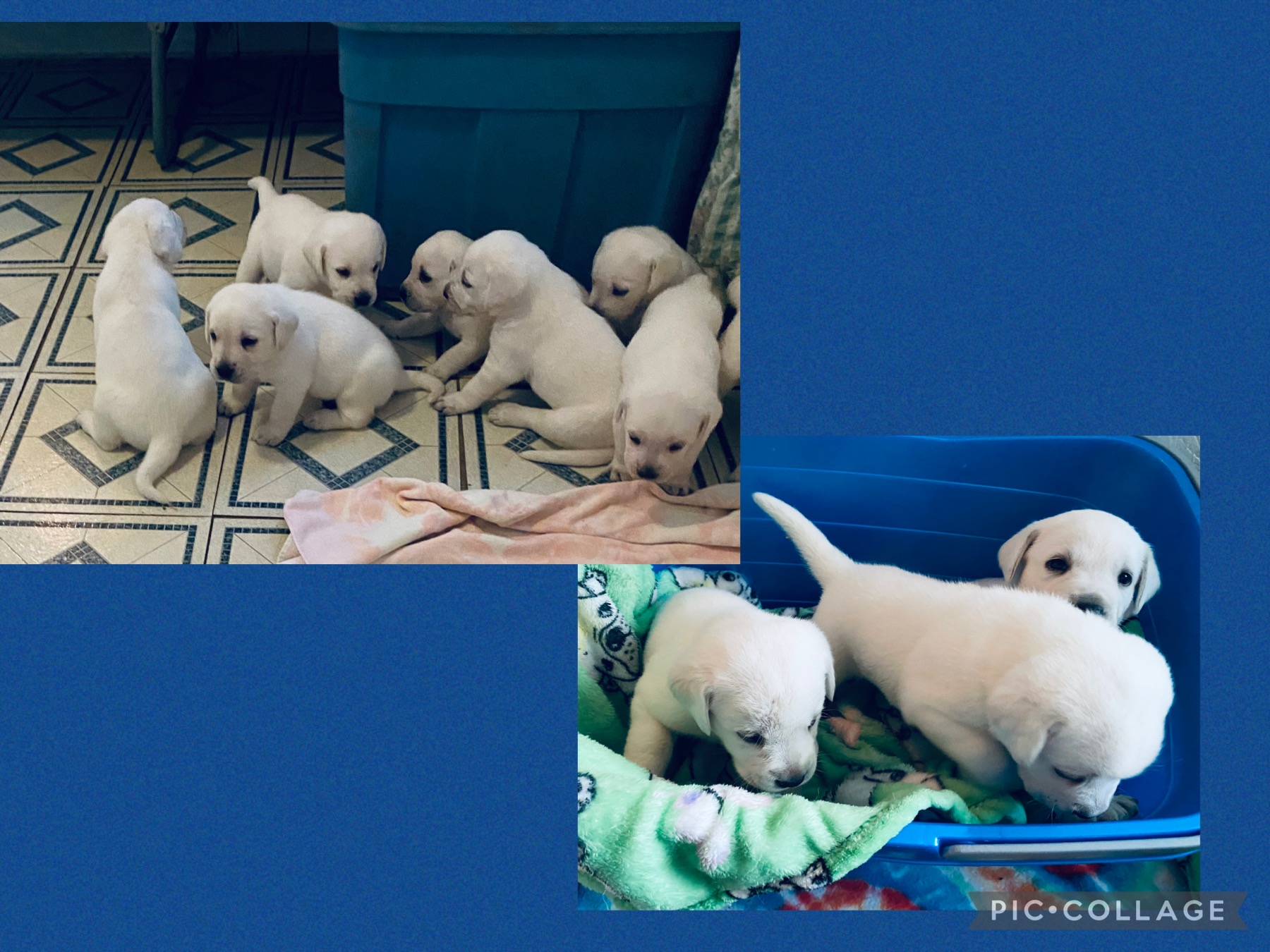 JoJo and Jaxon’s babies have arrived ! There are three boys and three girls. They all have new homes to go to, so I am excited to raise these babies for their new families. If you are interested in getting a new white lab puppy my next litter is due on October 18th. Parents for that litter are Pearl and Jaxon. Don’t wait to long!